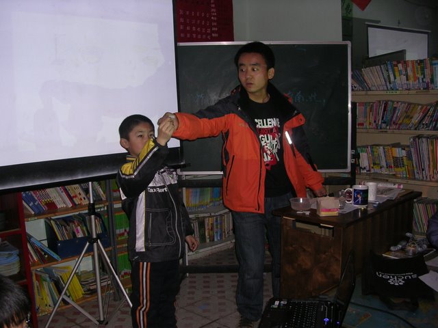 课程进行中,瞧离讲台最近的一个小朋友,连出去方便都得我协助,他也听得很认真啊